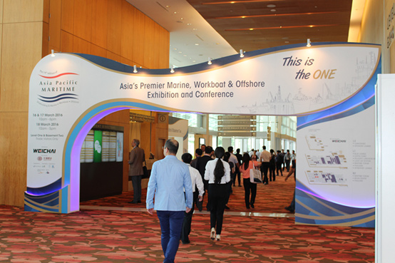 2016年3月16至18日,亞太海事2016年于新加坡舉辦,亞太海事(APM) 是首屈一指的展覽和會議,聚焦于造船&海運,作業(yè)船和海外。亞太海事匯聚全球海運和亞洲海外社區(qū),希望滿足來自亞洲的15,000名顧客和船東以及來自60多個國家的1,500個國際產(chǎn)品&海事服務(wù)公司,包括18國展團和50多名對行業(yè)有影響力的人,所有人都將在此海事會上采購,銷售,推廣和學(xué)習(xí)。